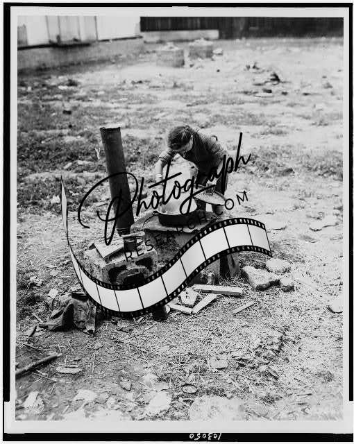 Ukrainian girl prepares,meal,stove,concentration camp,Salzburg,Austria,1945
