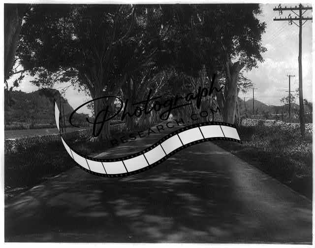 Section,Central Highway shaded,Royal Poincianna,Poinciana,Alamo trees,Cuba,1920