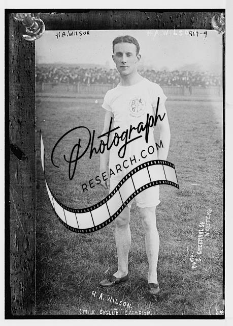 H.A. Wilson,one-mile English champion,on field in track clothes,Athlete,1909