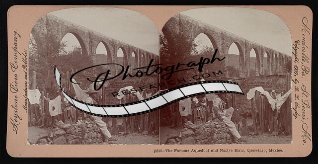 The famous aqueduct and native huts, Queretaro, Mexico