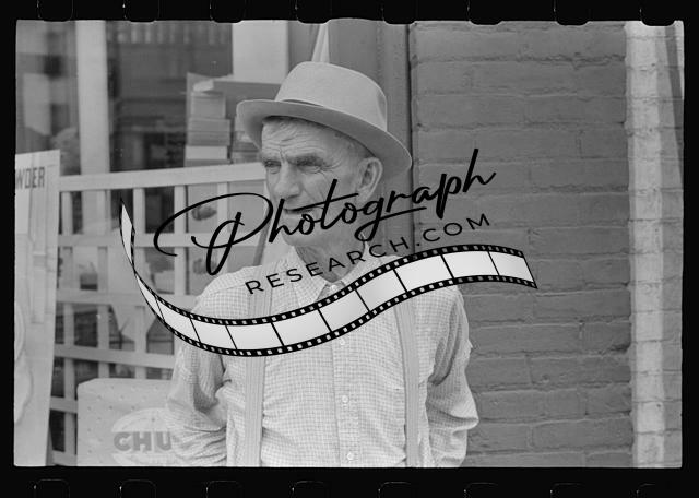 Man on street corner,Marysville,Ohio,OH,Summer 1938,FSA,Union County