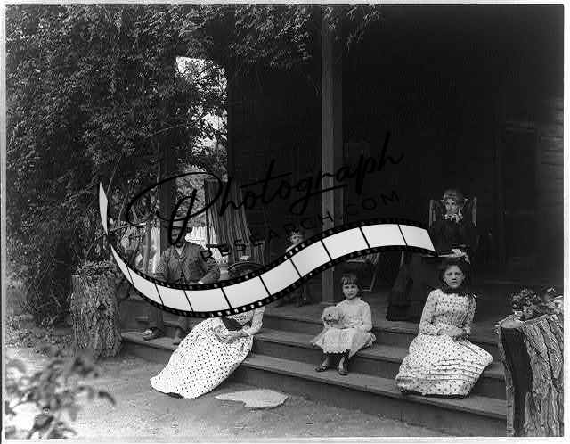Family on Porch,McClung Ranch,Kern County,California,CA,c1880,Carleton Watkins