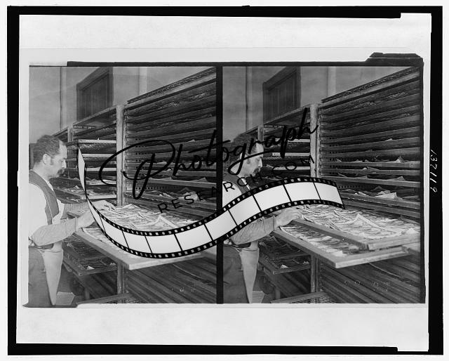 Man checking drying tray at U.S. Bureau of & Printing,c1908,money