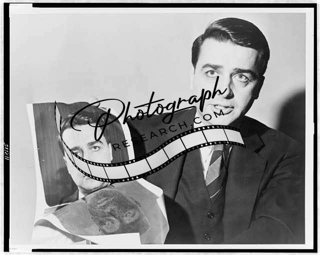 Dr. Fritz Zwicky,holding photograph made during astronomical experiment,1953
