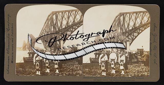 Handsome highland lads and bridge over Firth of Forth, Scotland