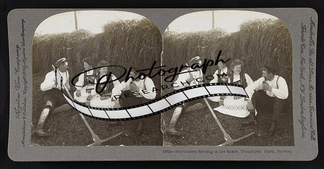 Haymakers resting in the shade, Trondhjem farm, Norway