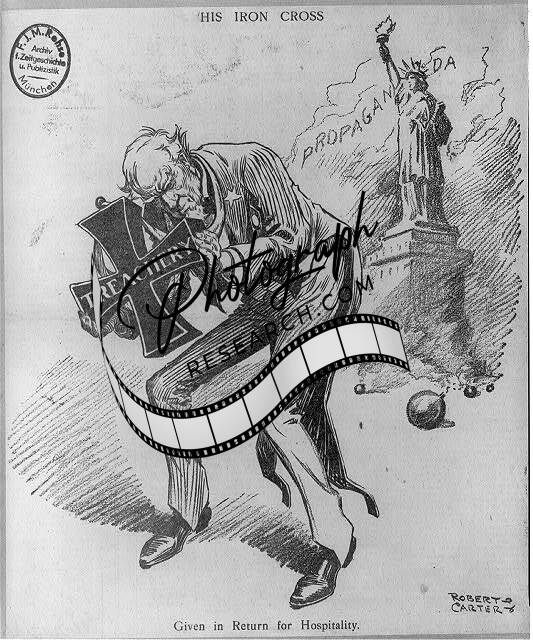 Cartoon,German-American,iron cross,Statue of Liberty,Robert Carter,1915