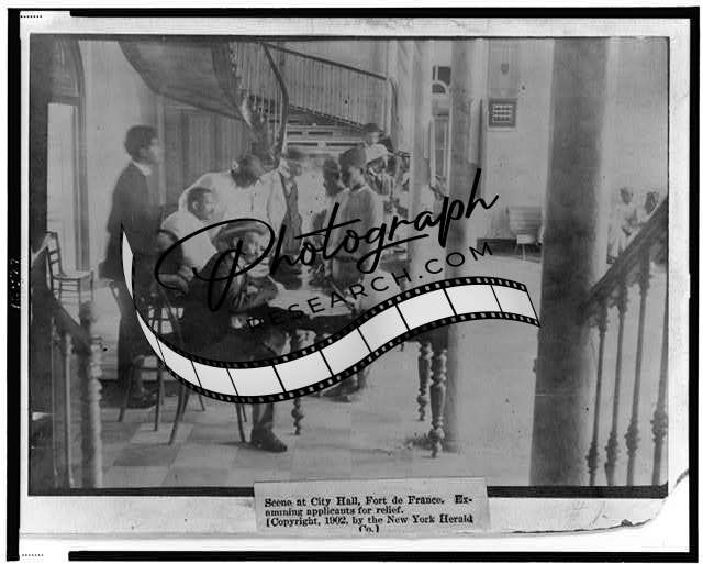 City Hall,Fort de France,Examining applicants,Relief,c1902,Martinique,Disaster