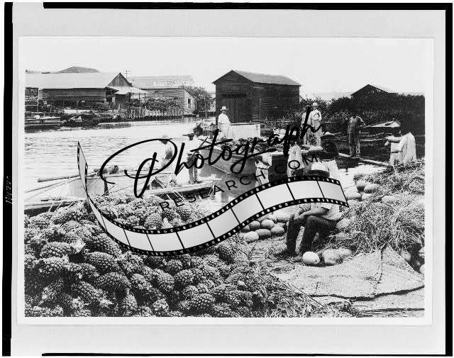 Market Scene,Waterfront,Piles of Pineapples,Watermelons,Tampico,Mexico,c1910