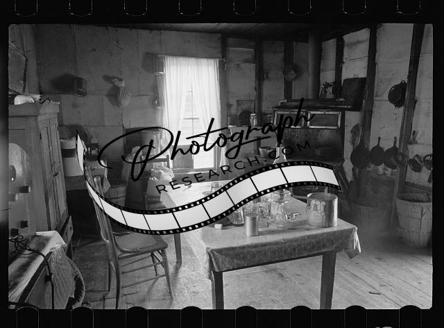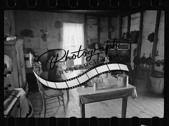 Interiors,rooms,stoves,tables,dressers,chairs,cooking utensils,nitrates,1935