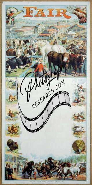 Fair,1891,people examining animals near exposition buildings,animals,ducks