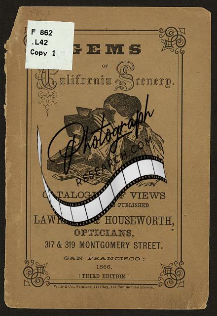 Cover,Gems,California scenery,Catalogue,views,Lawrence,Houseworth,opticians,1866