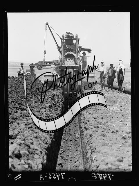 Title: I.P.C. [i.e., Iraq Petroleum Company]. Trench digger at work on Esdraelon stretch