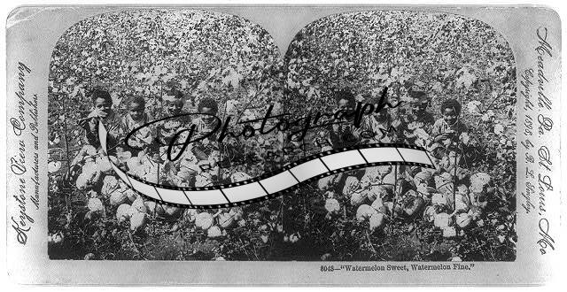 Photo of Stereograph,Watermelon Sweet,African American Boys eating in field,1898