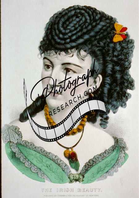 The Irish beauty,Currier & Ives Photo,1856-1907,Woman,Dark Curled Hair,jewelry