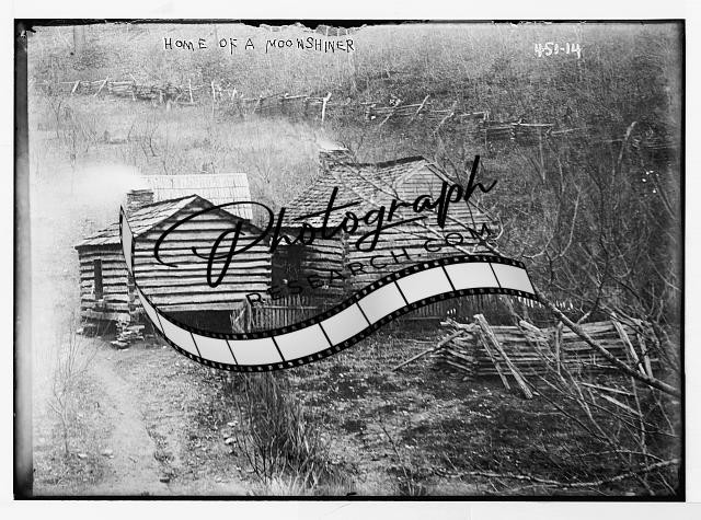 Log cabins,home of a moonshiner,July 1909,wooden fence