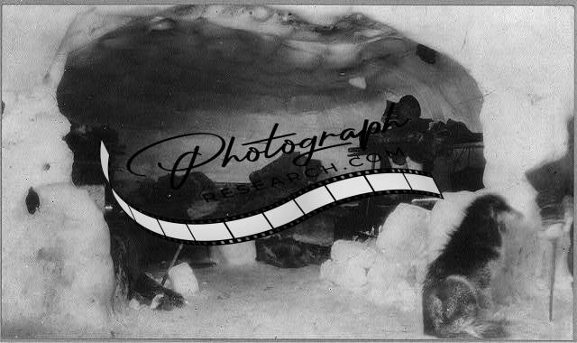 An Eskimo inside of an igloo,dog,1900-1923,Dwelling,ice