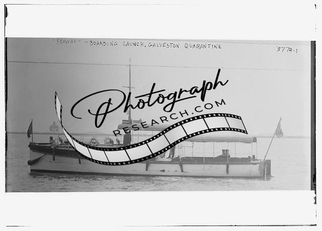 Boarding launch SEAWAY,Galveston quarantine,boat,vessel,American flag,Bain News