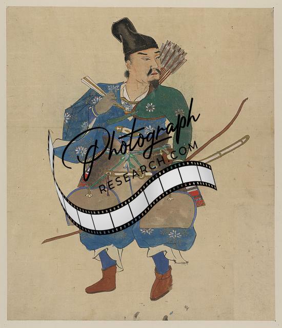 Warrior archer,Photo of Ukiyo-e,Japan,Padded Armor,Unstrung Bow,1800-1870
