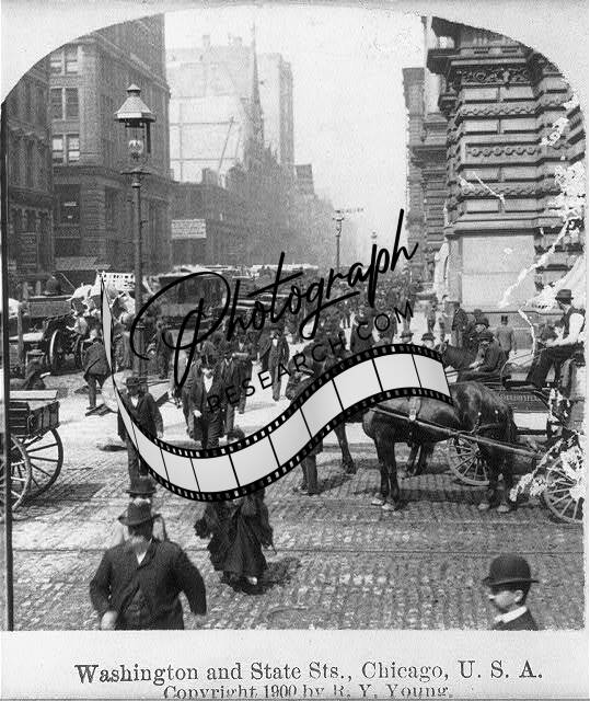 Washington & State Streets,Chicago,Illinois,IL,c1900,Street Lamp,People,Horses