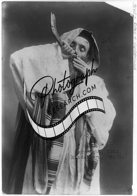 Tekuo,Tokea,c1901,Rabbi,wearing prayer shawl,blowing from shofar,ram horn