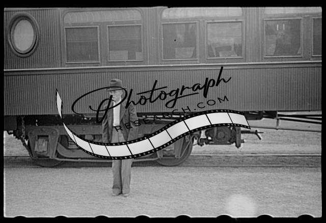Man in railroad station,Manchester,Georgia,GA,Train Station,May 1938,Vachon