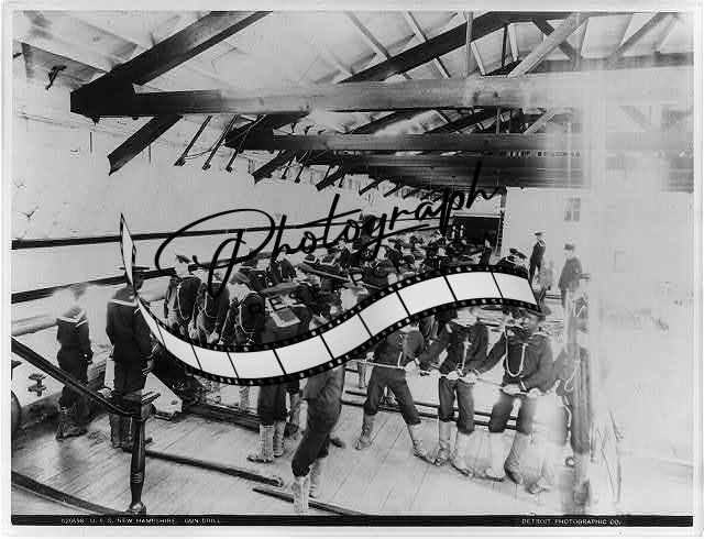 U.S.S. NEW HAMPSHIRE: Gun drill on board ship,c1898,Navy,Marines