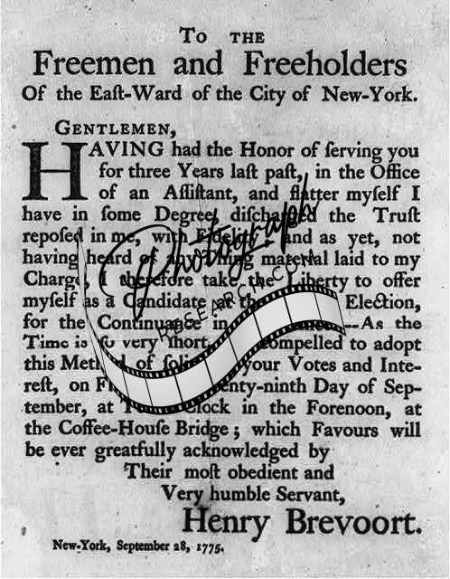 Caption card tracings: U.S. Hist. 1775; Broadsides; NYC.
