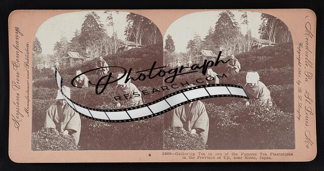 Gathering tea in one of the famous tea plantations in the province of Uji, near Kioto, Japan