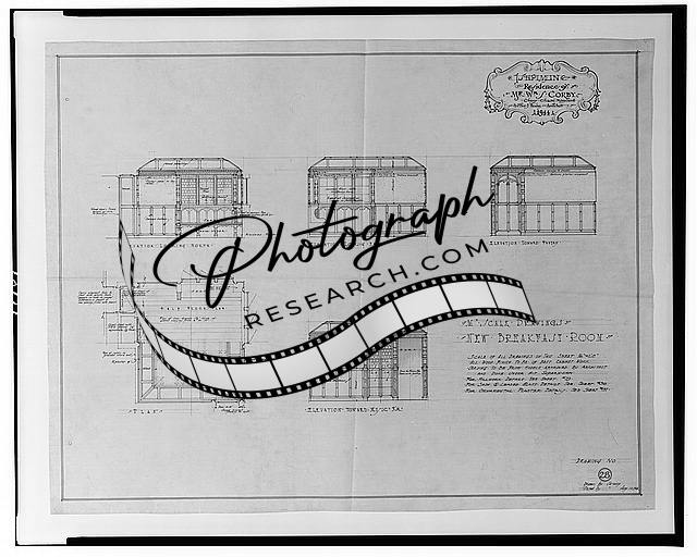 Inscription: 'Elevations and sections, new dining room & sleeping porch, residence of Mr. W.S. Corby, Chevy Chase, Md.'
