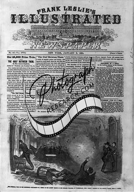 Front page of Frank Leslie's Illustrated Newspaper, 1864 Jan. 2, with illustration: The Guerilla War on the Mississippi - Explosion of a Shell in the Ladies' Saloon of the Steamer WELCOME, at Waterproof, Miss.