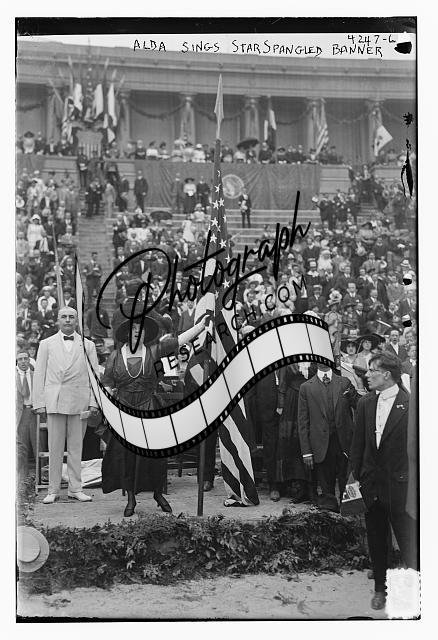Alda sings Star Spangled Banner,American flag,Bain News Service