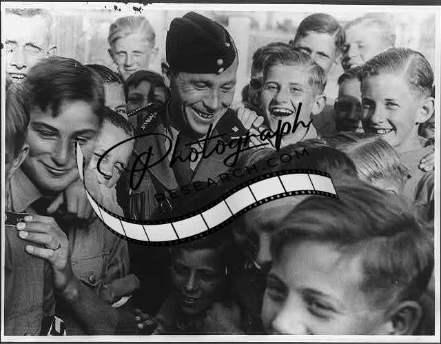 Italy, ca. 1938: close-up of smiling Hitler Youth and uniformed Nazi official