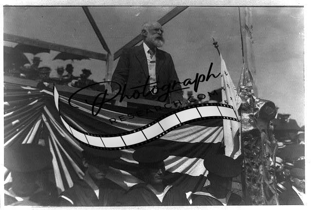 James Bryce,1838-1922,speaking from platform,Ticonderoga,US Sailors,c1909