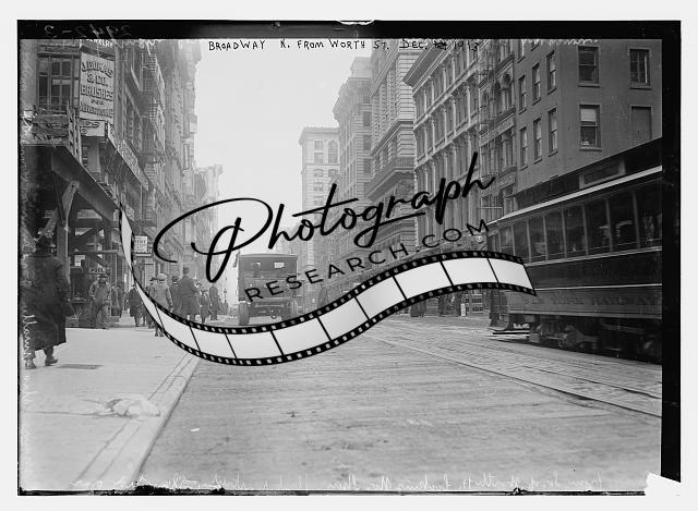 Broadway N. from Worth Street,December 1913,automobile,trolley car,pedestrians