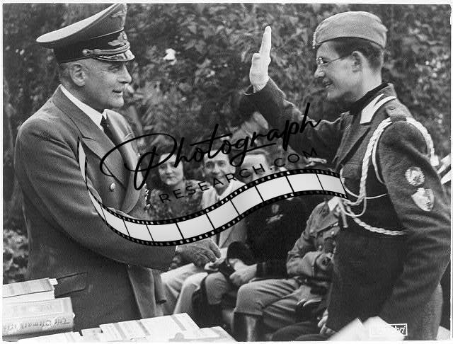Italy, ca. 1938: close-up of smiling Hitler Youth and uniformed Nazi official