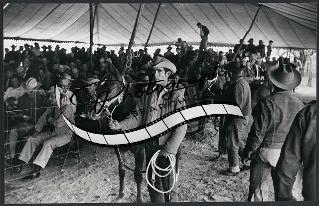 Horse and handler waiting to enter the auction ring at a horse auction in Texas