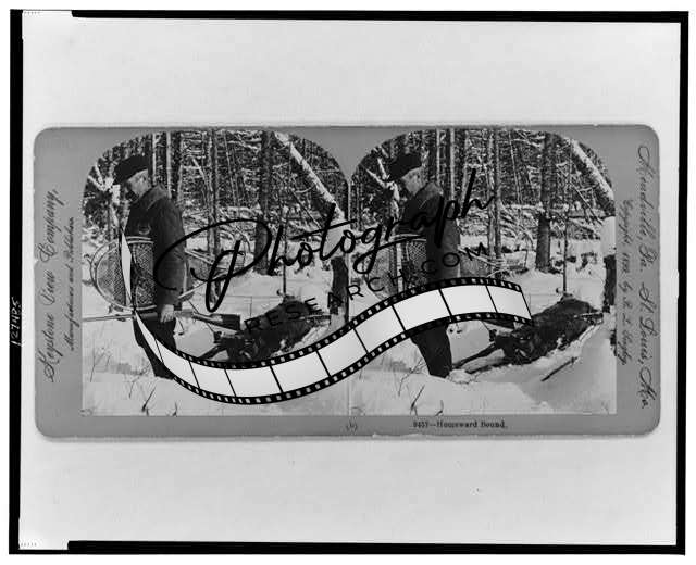 Homeward bound,Hunter,rifle,snowshoes,slain deer,snow,c1899,Reproduction
