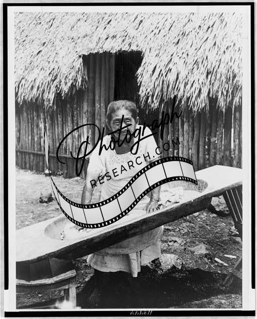 Georgia Pat,Maya Indian Woman,washes clothes in hollowed log,1941,Laundry