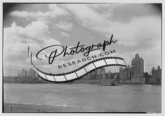 New York skyline from Welfare Island. Campanile to Tudor City,NY,Gottscho