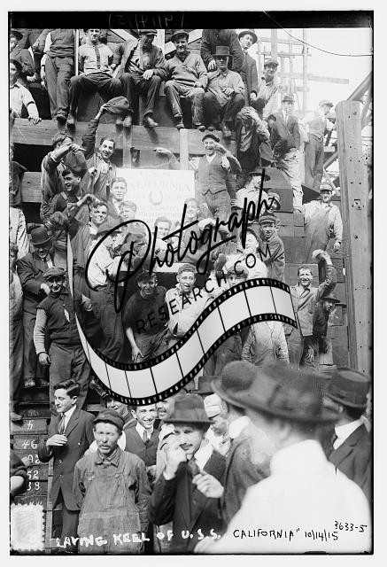Laying Keel of CALIFORNIA,crowd gathered,ship,vessel,Bain News Service