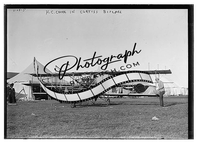 H.C. Cooke in Curtis biplane,airplane,air pilot,aviation,aviator,people