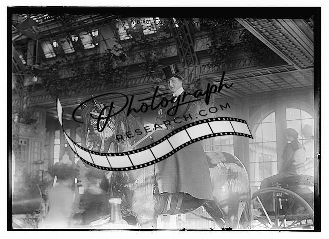 Riding costume style show,woman on fake horse,Bain News Service,top hat