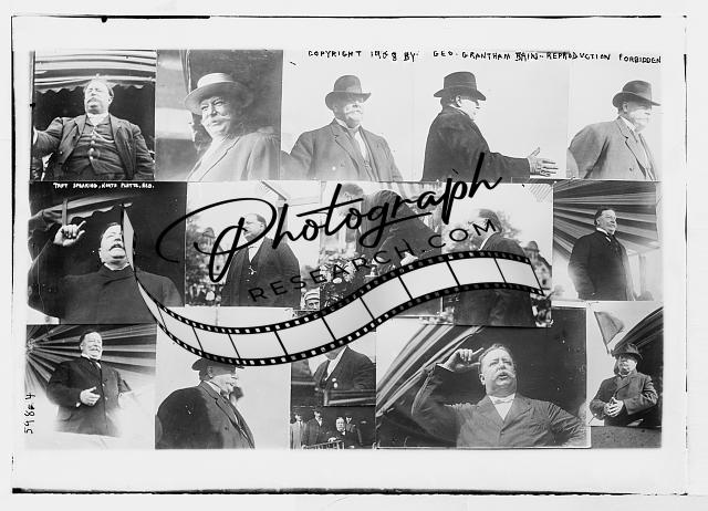 15 small pictures of President William Howard Taft,1857-1930,on campaign trail