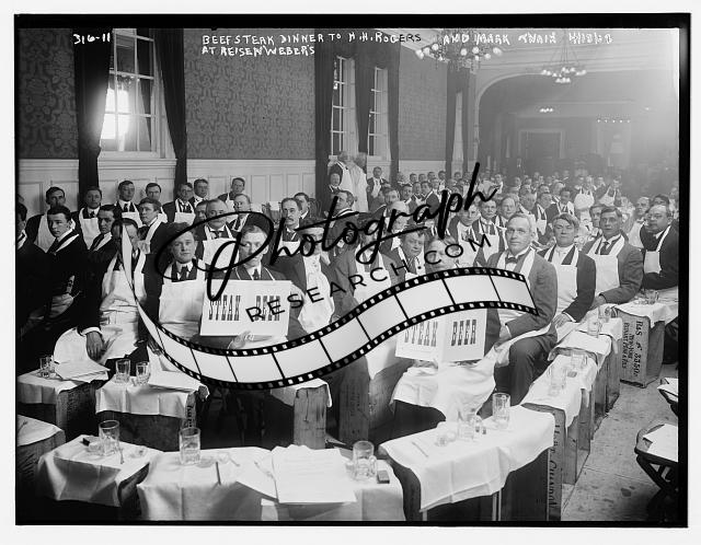 Beefsteak dinner,Reisenwebers,honour H.H. Rogers & Mark Twain,Steak,Beer,1908