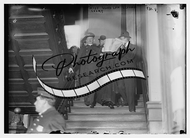 Miss Ward Law leaving court escorted by policeman,others