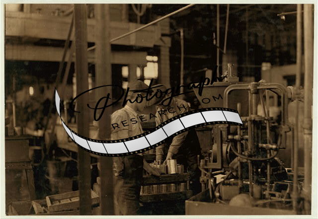 Title: Name: Dangerous Business. Boy working at canning machine with open gearing. Many suck machines and boys too. J. S. Farrand Packing Co. Witness--J. W. Magruder. July 7, 1909. Location: Baltimore, Maryland.