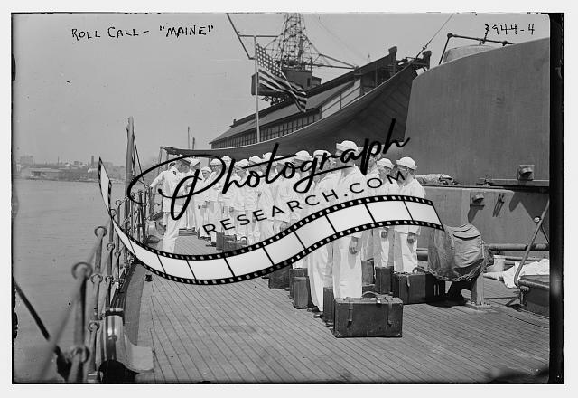 Roll Call -- MAINE,deck of ship,vessel,Sailors,suitcases,Bain News Service