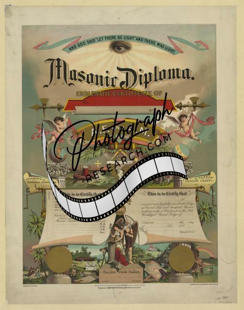 Masonic diploma,February 22,c1891,Emblematic Certificate,angels
