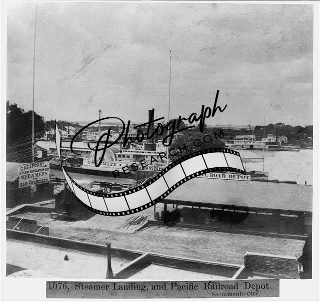 Steamer landing,Pacific Railroad Depot,Sacramento City,California,CA,1866